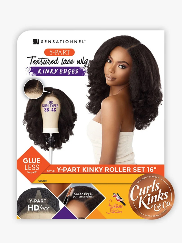 Sensationnel Kinky Edges Synthetic Y-Part HD Lace Wig – Kinky Roller Set 16″